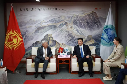 Директор НТЦ «Геоквантум» Арстанбек Абдиев и Генеральный директор ТЭМП ШОС господин Ху Кайцян в ходе встречи, на которой было официально подтверждено членство центра в организации.