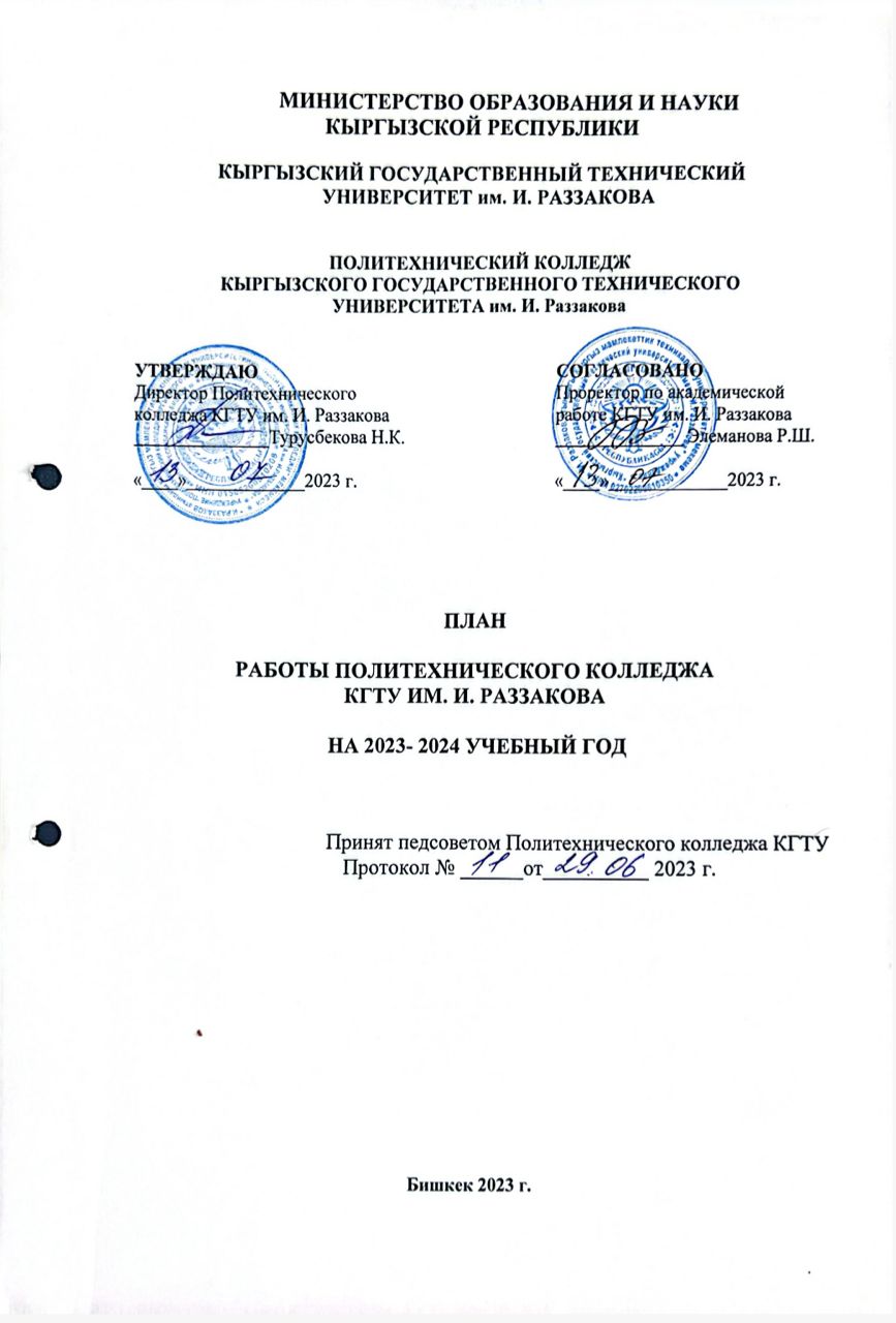 - План работы Политехнического колледжа КГТУ на 2023-2024 уч.г.