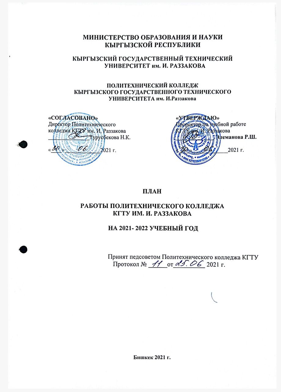 - План работы Политехнического колледжа КГТУ на 2021-2022 уч.г.