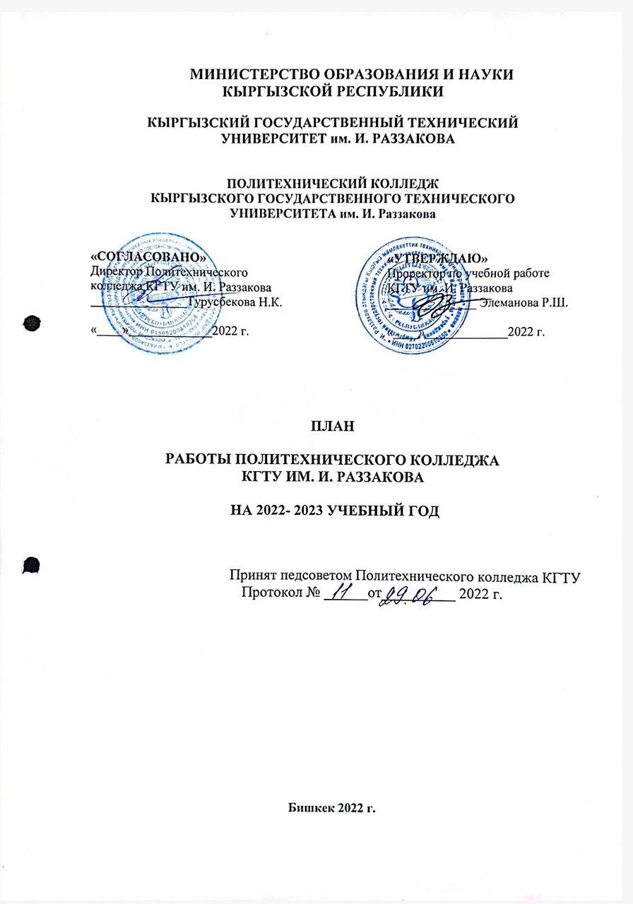 - План работы Политехнического колледжа КГТУ на 2022-2023 уч.г.