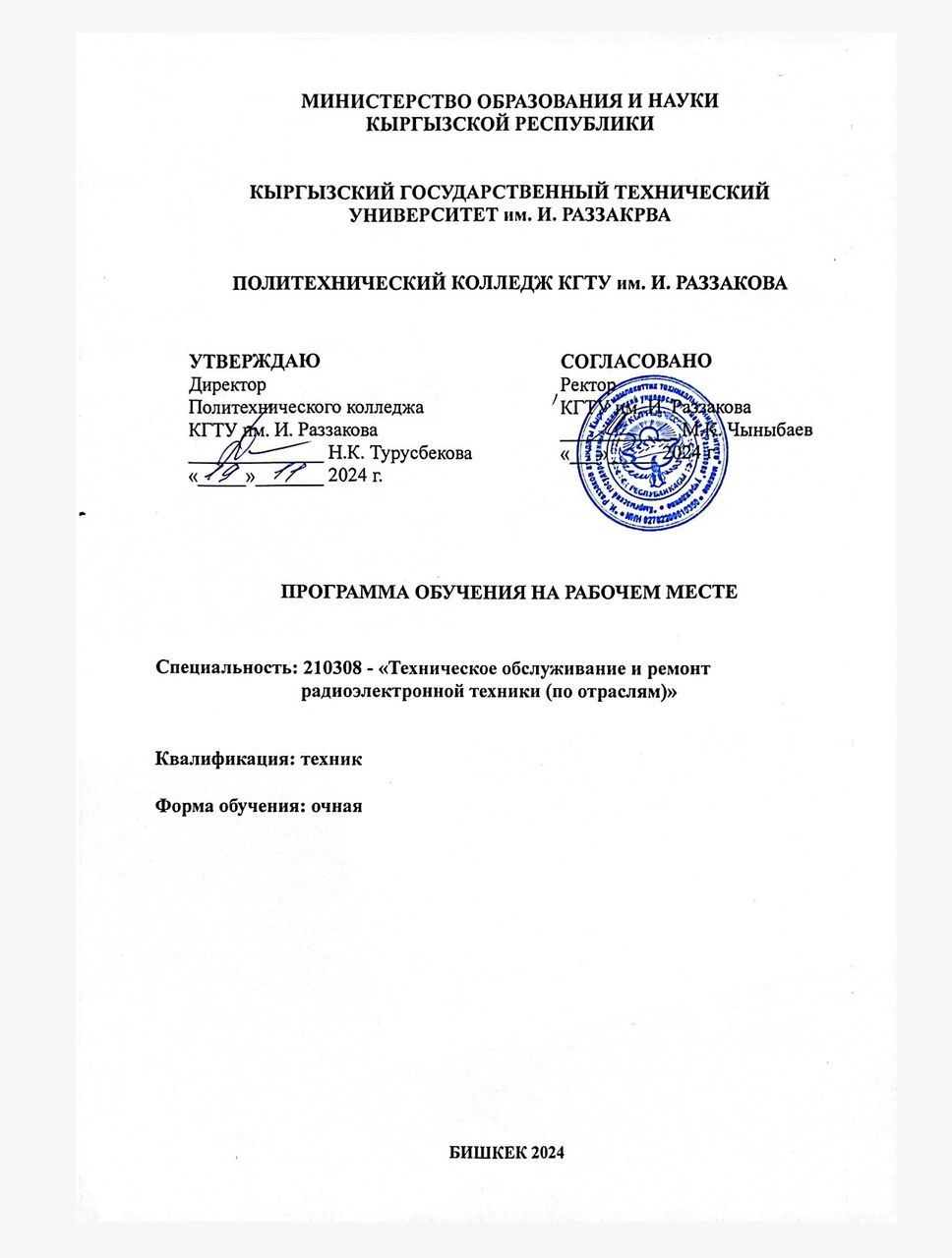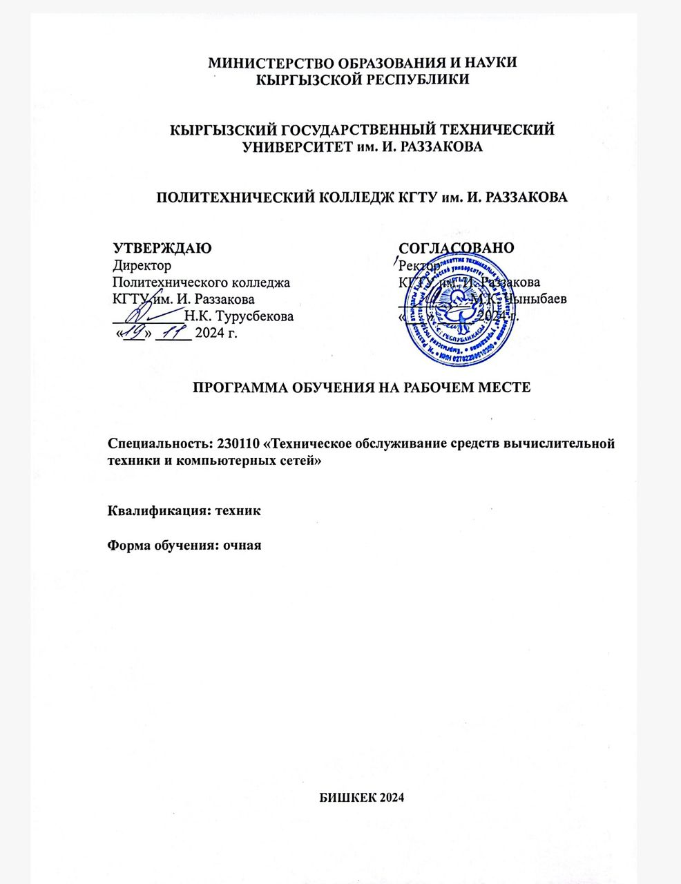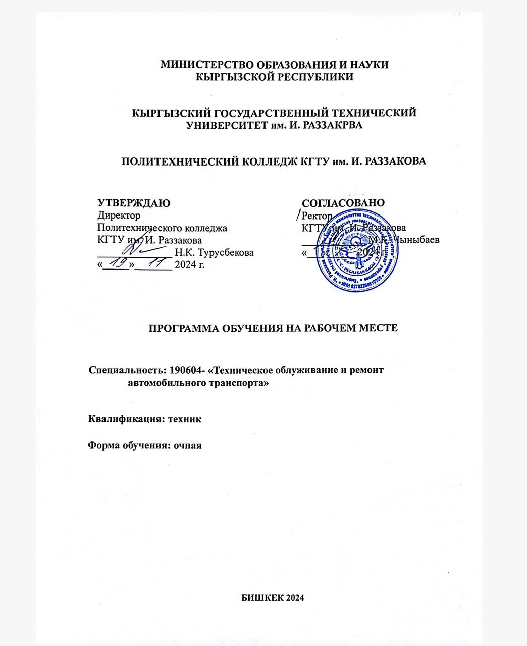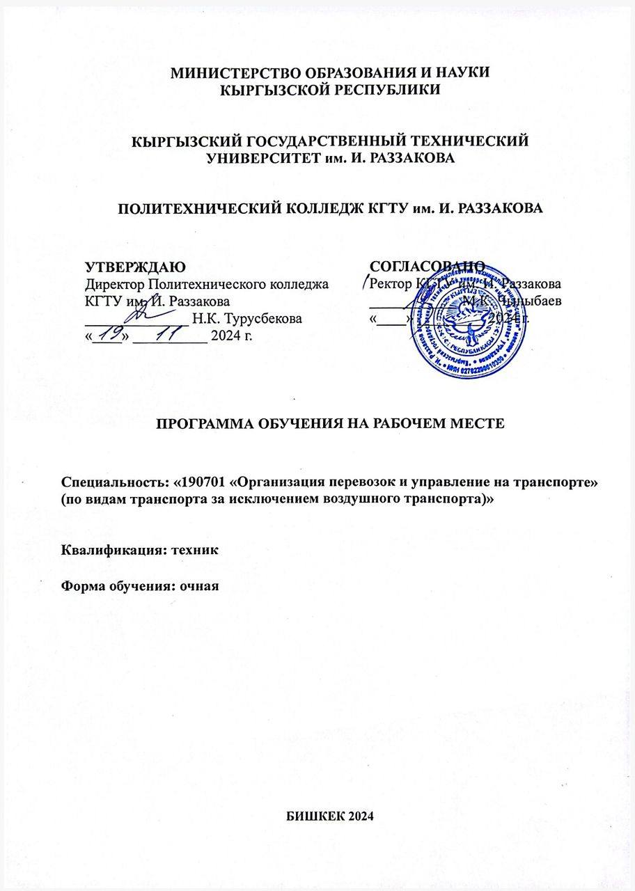 - 37. Положение об обучении на рабочем месте в Политехническом колледже КГТУ им. И. Раззакова