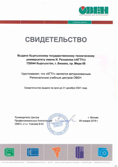 Наличие на базе кафедры «Телематика» Регионального учебного центра компании ОВЕН (23.09.2017г), в котором проходят курсы повышения квалификации инженера промышленных компаний.