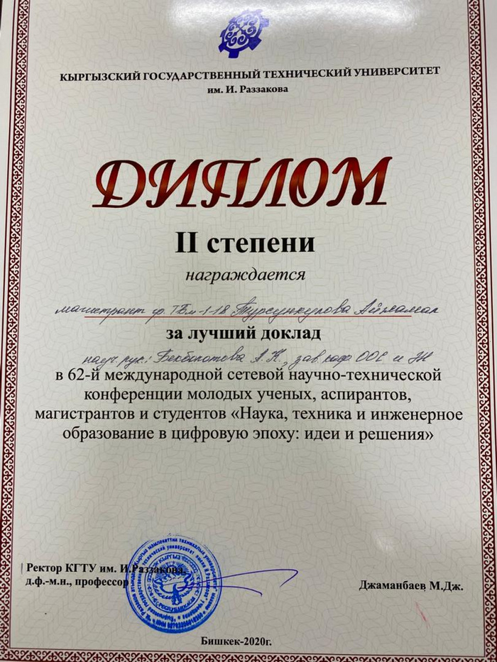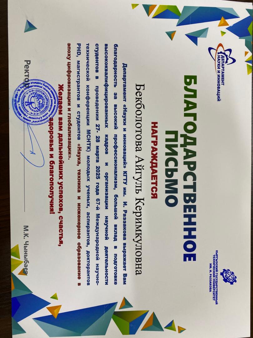 Ежегодно проводится научно-практическая конференция для студентов и молодых ученых, публикуются материалы лучших докладов и выступлений в журнале «Известия КГТУ» (сайт: https://kstu.kg/journal/ ).