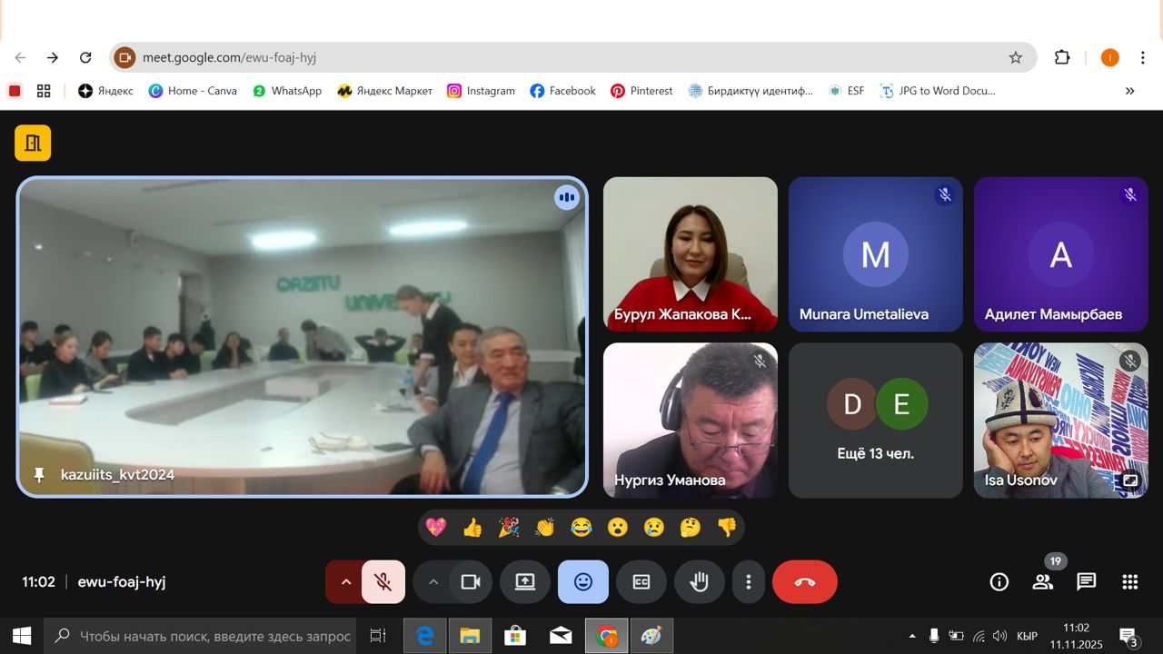 Кафедра «Техносферная безопасность» КГТУ им. И. Раззакова совместно с Офисом зелёных и цифровых решений успешно организовала Международный студенческий Экофорум Центральной Азии, который прошёл 11 ноября 2025 года в онлайн-формате.