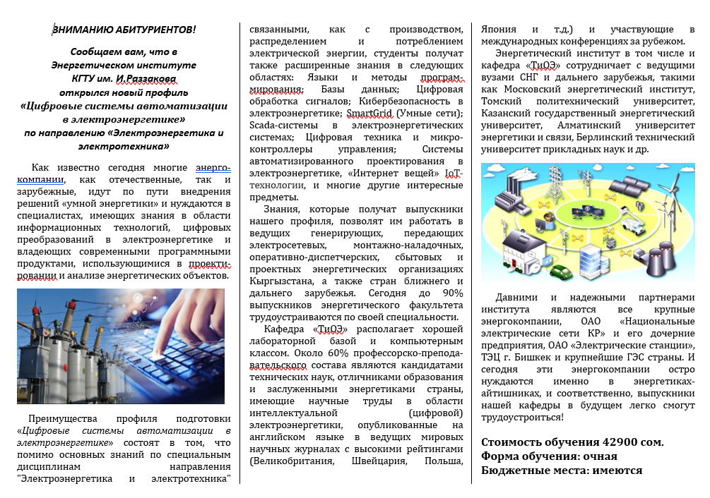 Для поступления в ЭИ по профилям кафедры "ТиОЭ" необходимо предоставить: