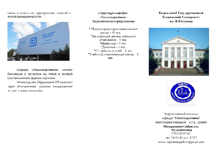 Буклет кафедры для КГТИ