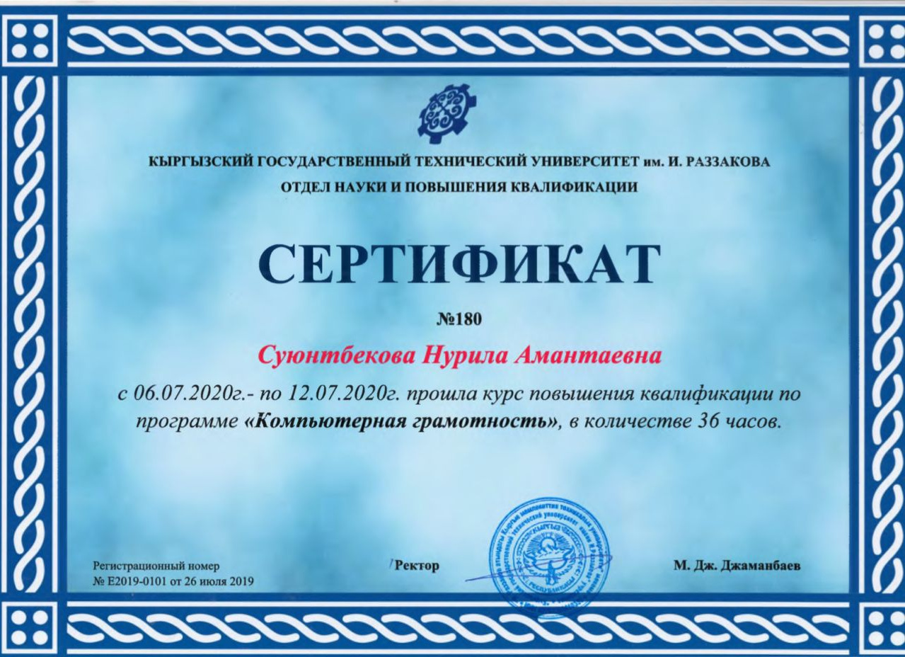 - Scopus Author ID: Суюнтбекова Нурила Амантаевна