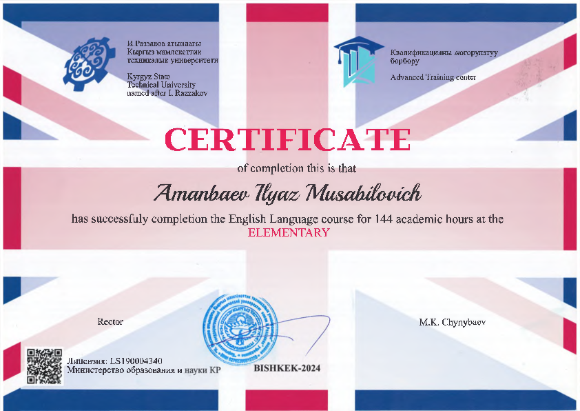Образование: Аманбаев Ильяз Мусабилович в 1974 году окончил Энергетический факультет Фрунзенского политехнического