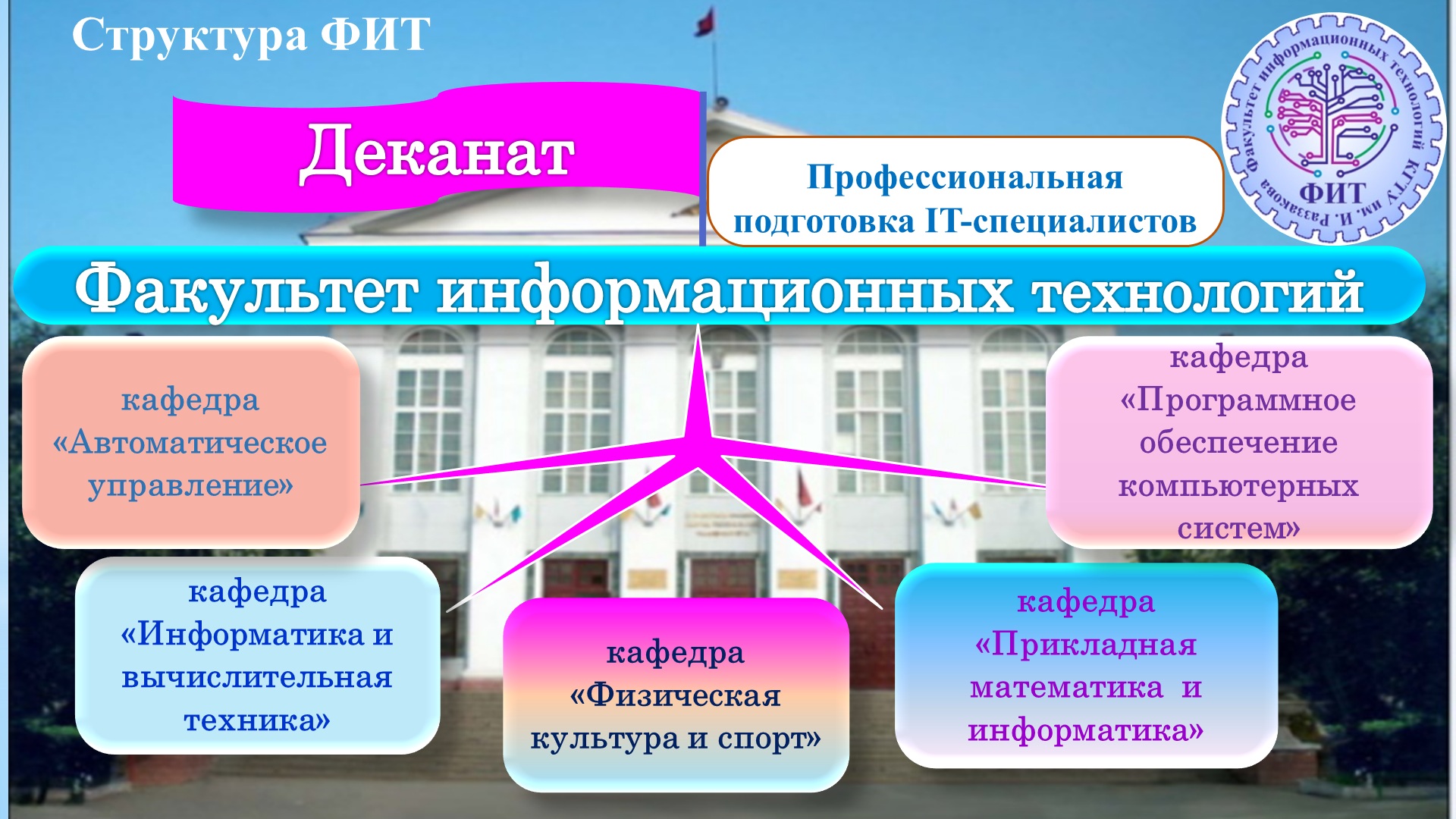 Факультет информационных технологий, далее ФИТ, является структурным подразделением КГТУ им. И. Раззакова.