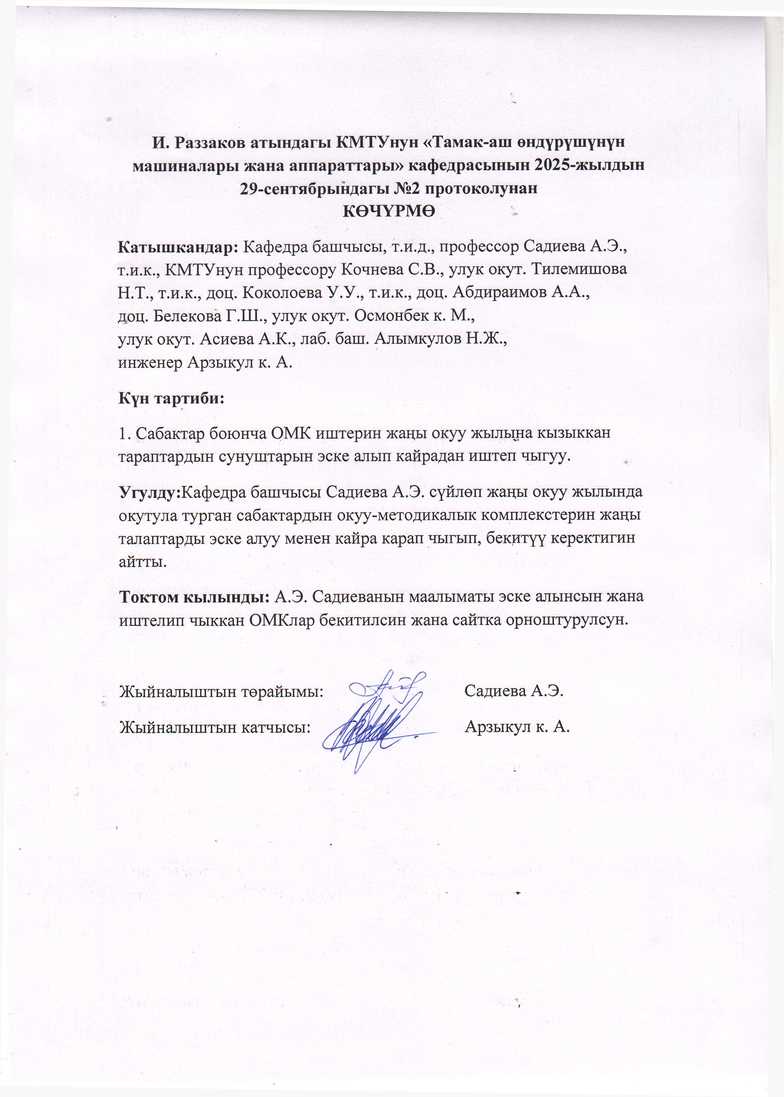 - НУСКАМА Кафедрада иштерди жана практикалык сабактарды өткөрүү боюнча