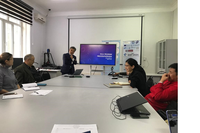 19 марта 2022 года начался цикл обучающих научных семинаров для PhD докторантов, аспирантов, молодых ученых, организуемых Докторской Школой КГТУ им. И. Раззакова. Первый семинар на тему концепции и содержания PhD диссертации провел Prof., Dr. Денни Чо (США), кафедра "Логистика" КГТУ. Насыщенная, интересная лекция познакомила слушателей с основами планирования содержания диссертационного исследования, основными этапами, возможными препятствиями и способами их преодоления. Лекция основывалась на богатом опыте организации PhD исследований в США, Великобритании и Африке. Слушателями было задано много вопросов, семинар был очень интересным и плодотворным.