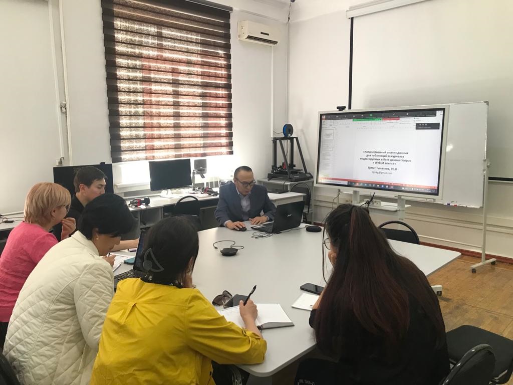 15 апреля 2022 года прошел очередной научный семинар для PhD докторантов и аспирантов. Тема: "Количественный анализ данных для публикаций в журналах индексируемых в базе данных Scopus и Web of Science". Ведущий: Урмат Тыналиев, Ph.D., University of Minnesota, United States.  В ходе семинара были рассмотрены и обсуждены такие важные темы: